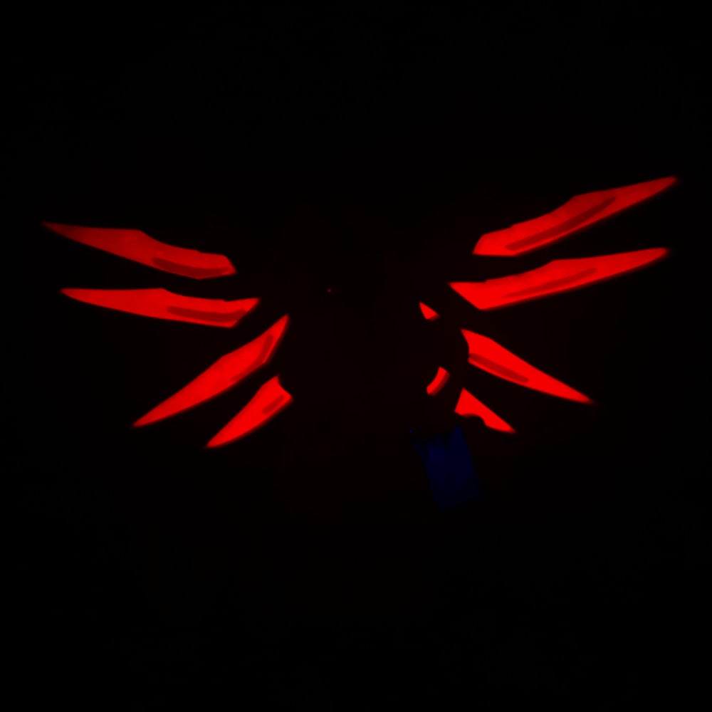 - Wings: gradient enamel with red and white glow (Zombie variant will have a lighter red and magenta glow)