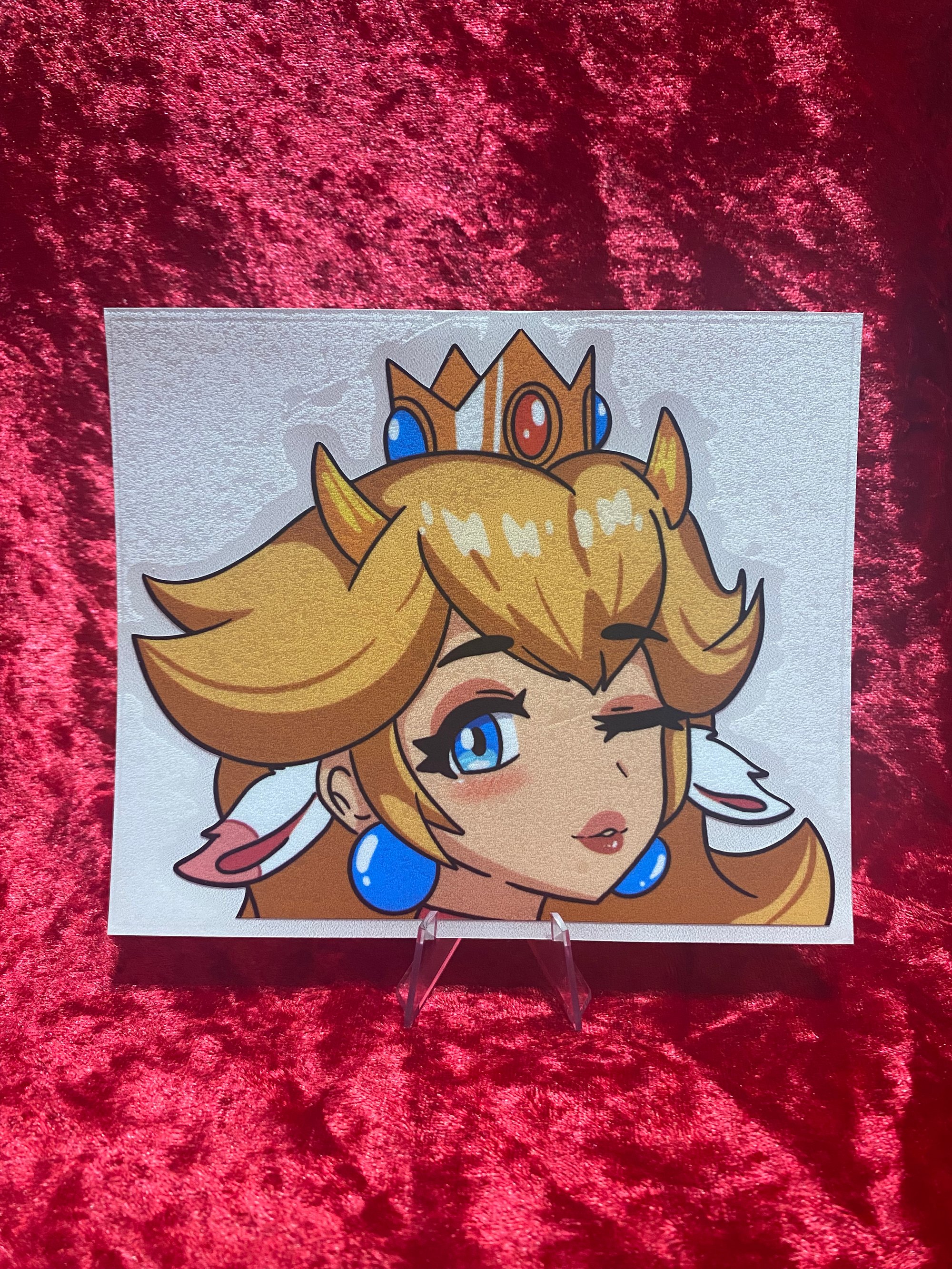 Approximately 6" kiss-cut gloss laminate stickers with transfer tape. Weatherproof and UV-resistant make them great for both outdoor and indoor applications.