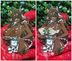 - Comes with a free matching magnetic bra enamel pin that can sit on top of your Milk Maid to cover her if needed. The bra has black nickel double plating along with red and white glitter on the bow.